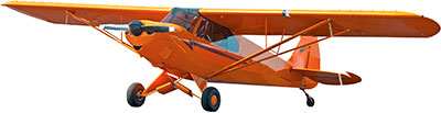 An animated biplane in flight. |