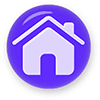 Large home icon with metallic trim.