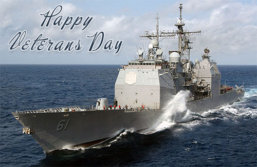 Happy Veterans Day - The US Navy Ticonderoga Class Guided Missile Cruiser USS Monterey. |